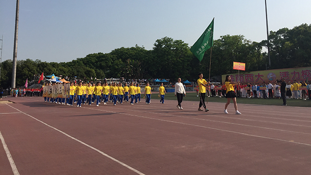 党委副书记方凤玲率领运动员代表方阵入场,方阵同学统一着黄色院服,明亮的黄色院服象征着希望与收获,展示出色情小说