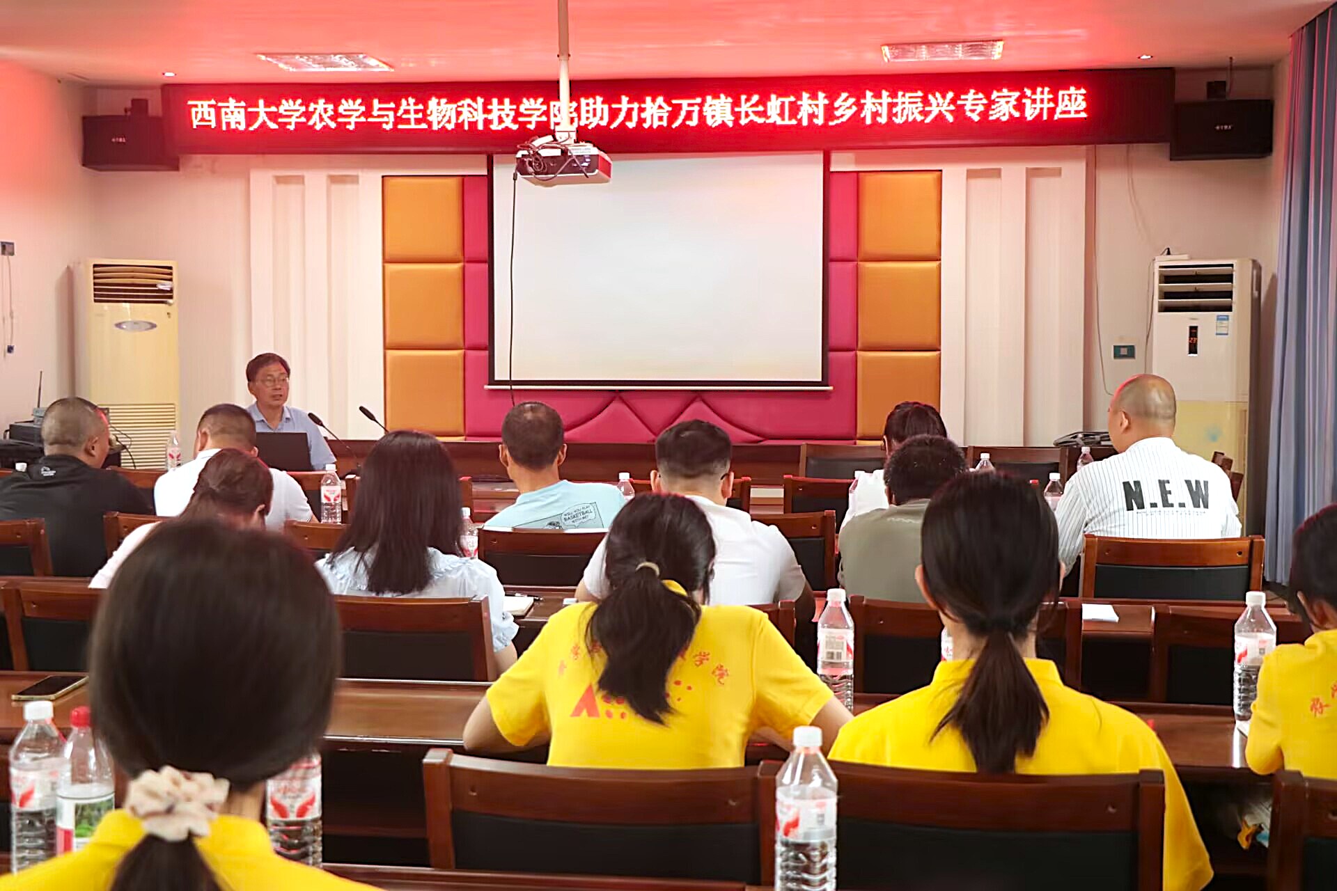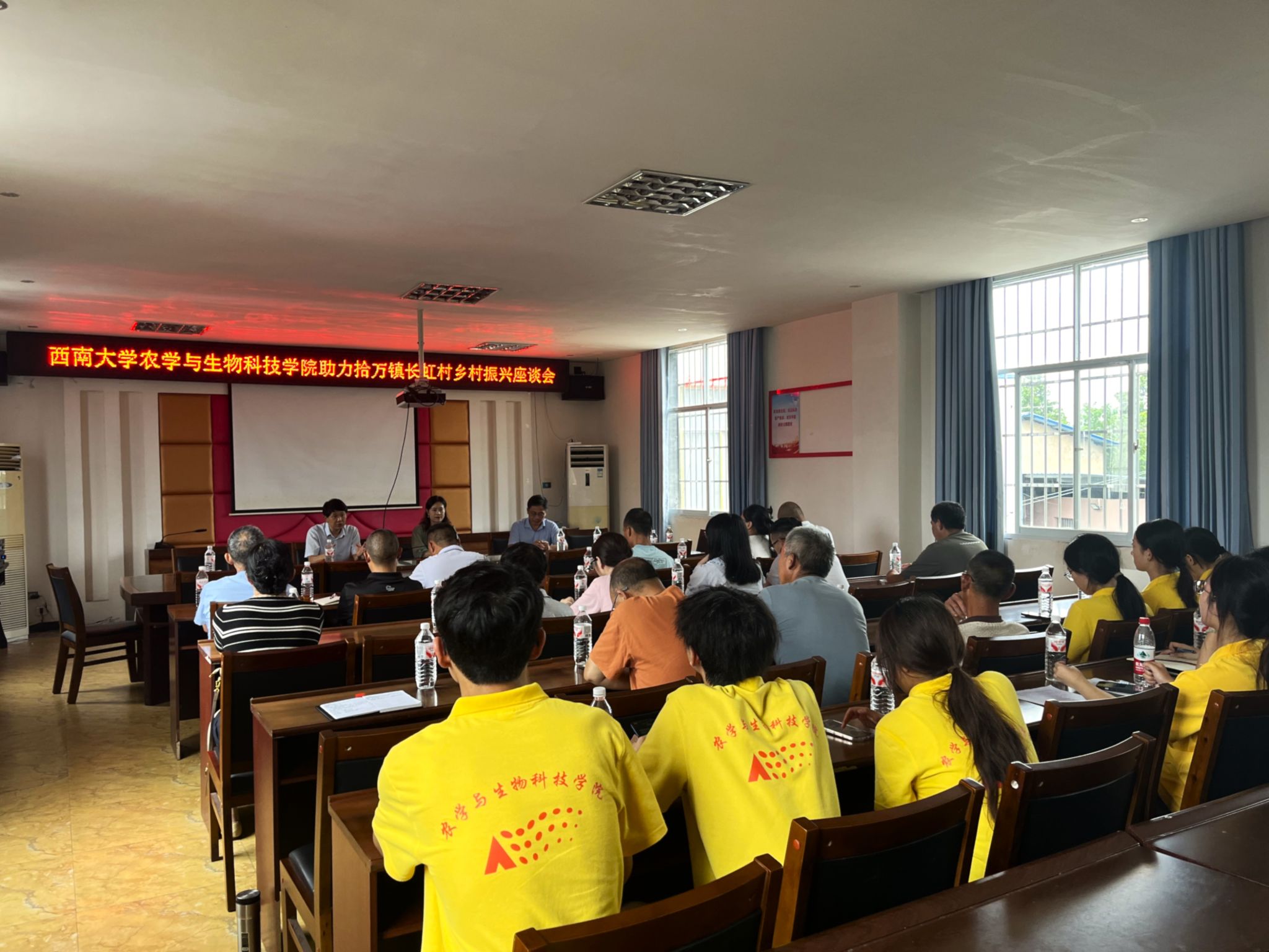 助力拾万镇乡村振兴座谈会在长虹村党群服务中心会议室召开,实践团师生与拾万镇副镇长及十余名种植大户代表齐聚一堂,深入剖析产业难题,共商产业发展良策,为乡村振兴注入“稻”路新动能。座谈会上,王地生副镇长以长虹村与袁隆平先生的深厚渊源为切入点,为大家介绍了长虹村水稻产业的发展历程,同时他也指出了长虹村目前面临的“稻+虾”模式瓶颈、五彩稻田部分品种显色不理想、稻米品质有待提升等挑战。张长伟教授发挥专业优势,围绕五彩水稻显色、大面积单产提升等问题展开技术指导,提供了改进排水技术、优化水稻品种等思路,并推荐引进色情小说